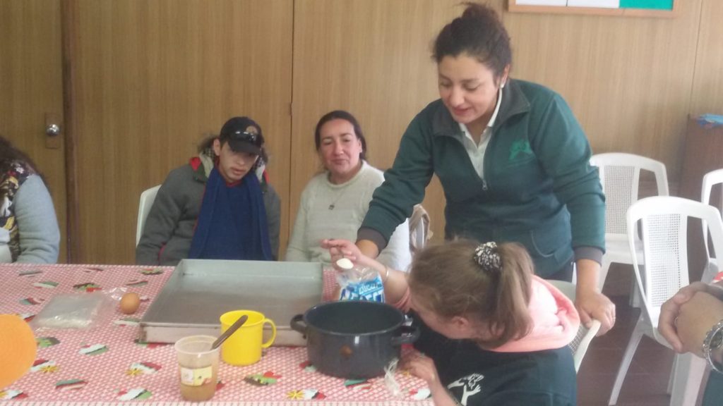 Para el Día de la Madre el grupo de Jardinería, Técnica Alimentaria y Multisensorial realizó una  visita a la huerta donde el profesor explicó las actividades que realizan todas las semanas y donde cosecharon todos juntos acelga. Luego en la cocina elaboraron una pascualina con sus hijos, mientras el otro grupo hizo caramelos de miel. La jornada finalizó con una clase abierta junto al profesor de música.