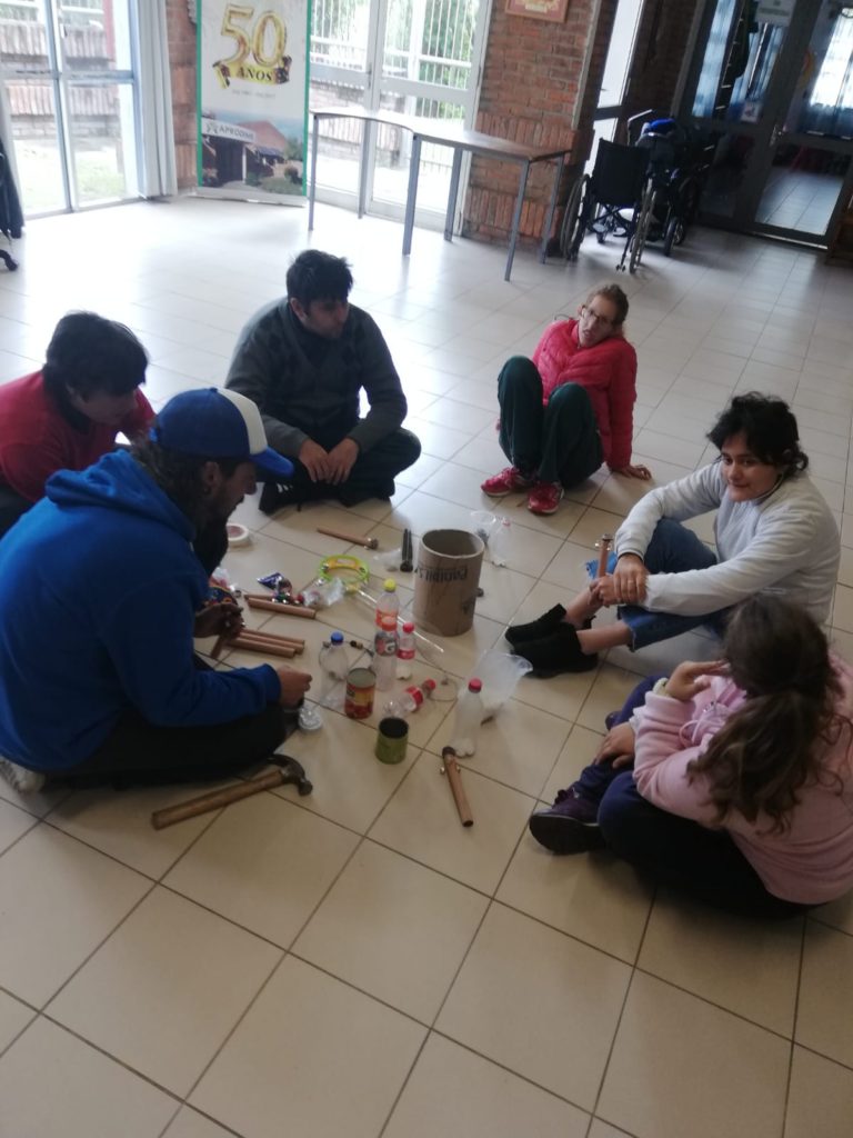 Construir tiene que ver con la capacidad creadora. En este caso trabajamos en la construcción de cotidiafonos, donde aprendieron a fabricar sus propios instrumentos y a hacer música con ellos. Los cotidiafonos son construidos a partir de materiales de uso cotidiano y de sencilla realización.