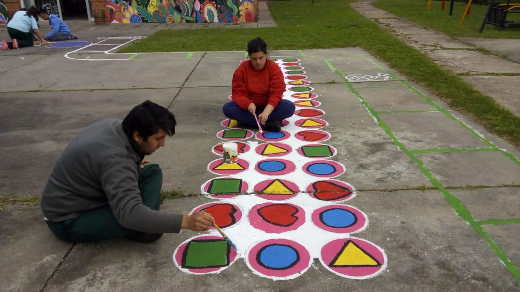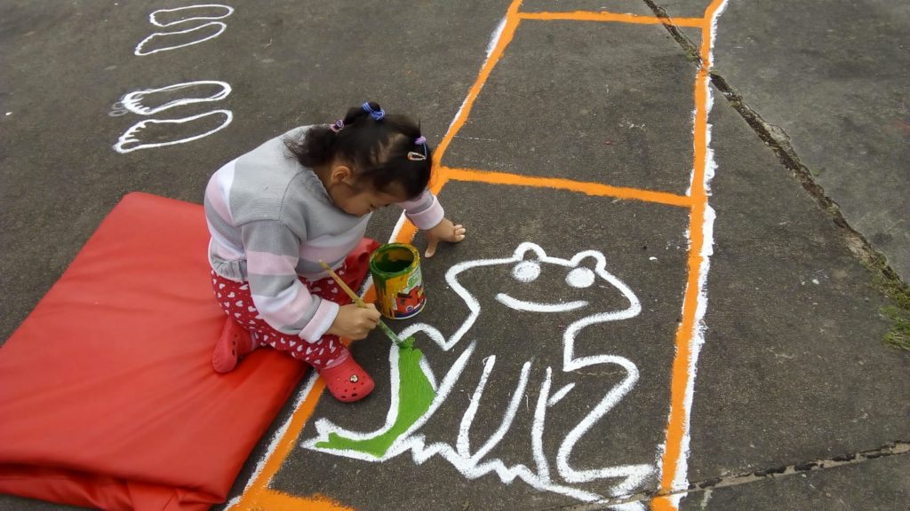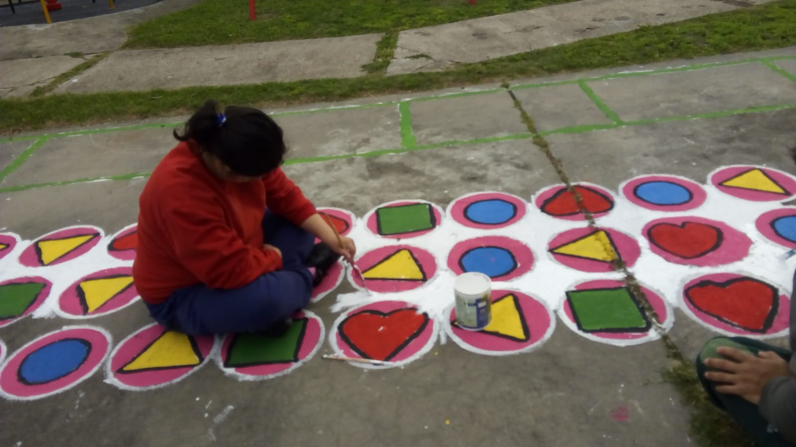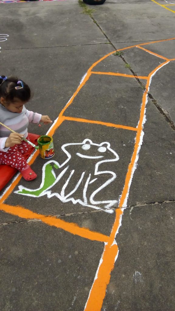 Los juegos al aire libre nos encantan. Quisimos pintar varios juegos en el piso y que pudieran hacerlo los propios niños. Involucrarlos en este tipo de actividades es, además de una linda actividad didáctica, una forma de que sean partícipes y constructores de sus propios juegos, poniéndole el toque personal de cada uno.