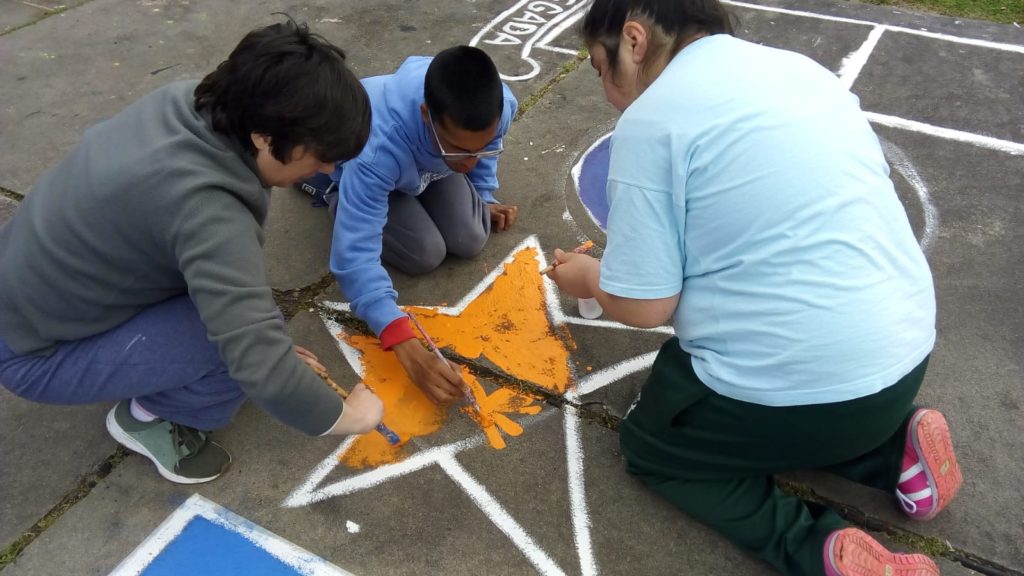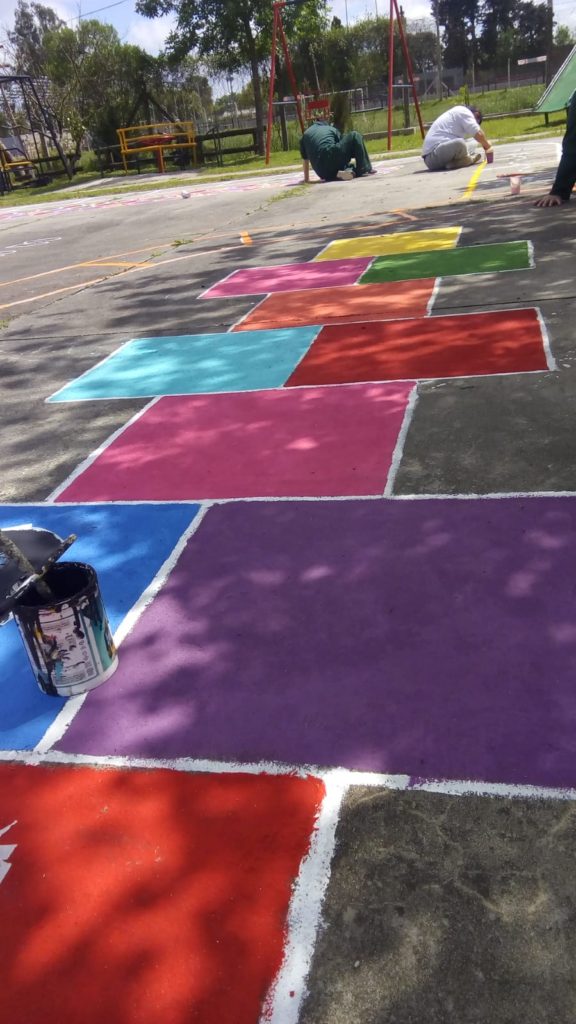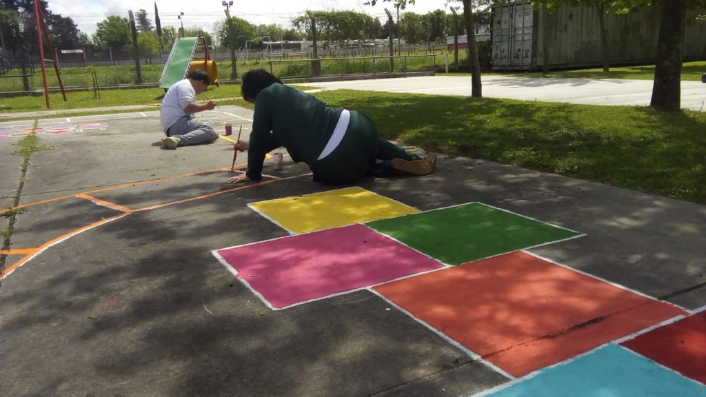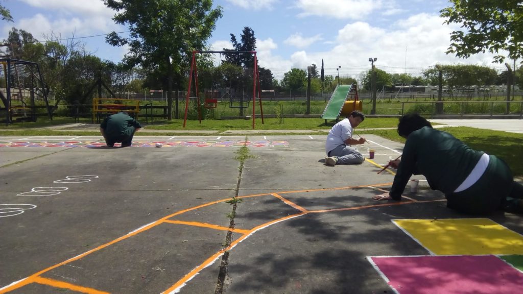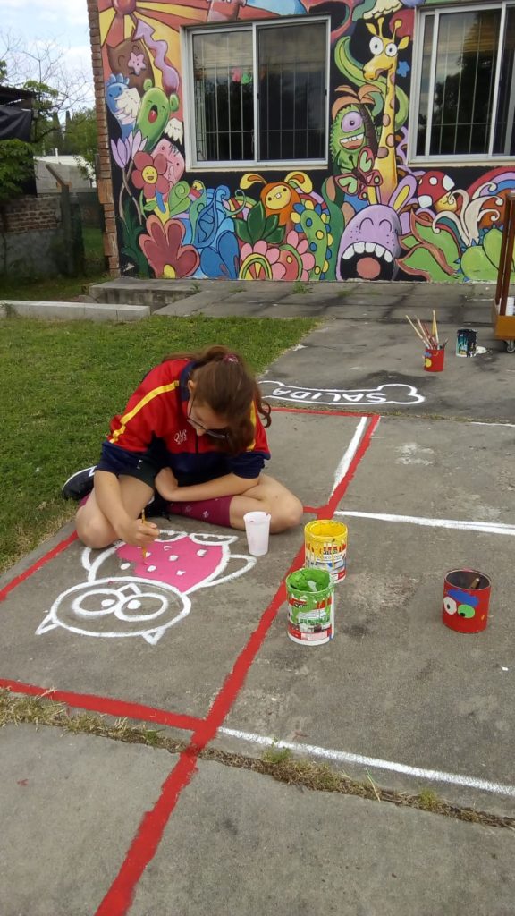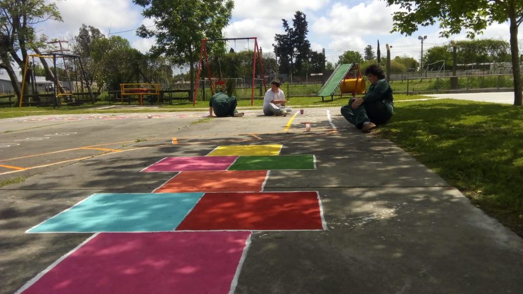 Los juegos al aire libre nos encantan. Quisimos pintar varios juegos en el piso y que pudieran hacerlo los propios niños. Involucrarlos en este tipo de actividades es, además de una linda actividad didáctica, una forma de que sean partícipes y constructores de sus propios juegos, poniéndole el toque personal de cada uno.